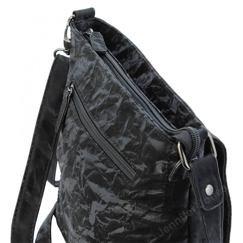 Unter und auf der Überschlagklappe, sowie an der Hinterseite befinden sich zusätzliche Reißverschlussfächer.